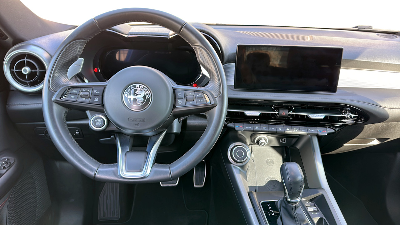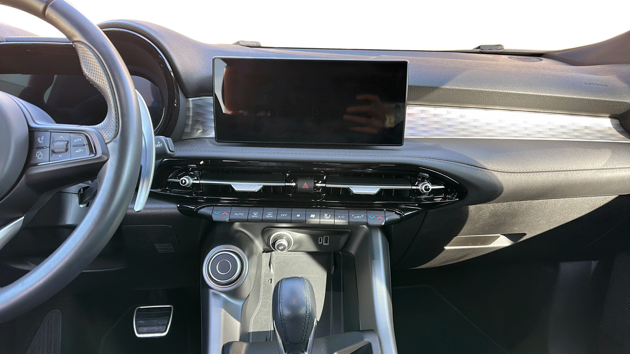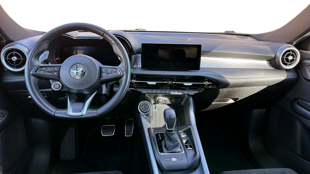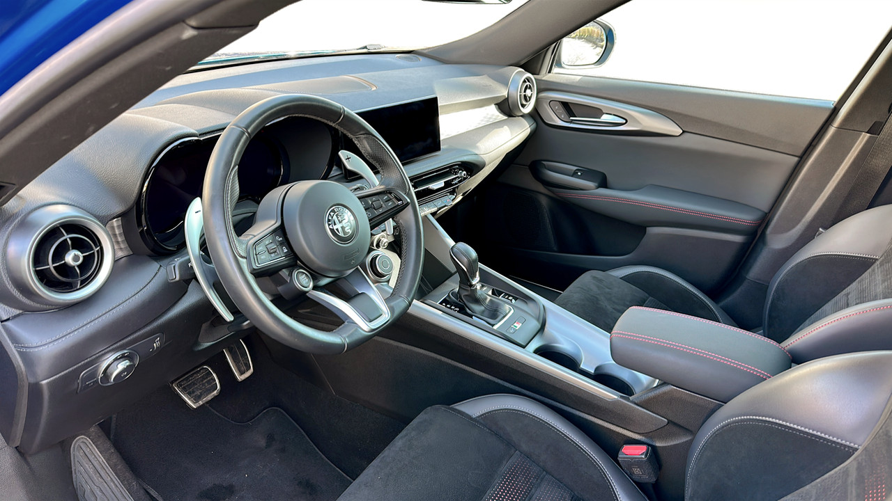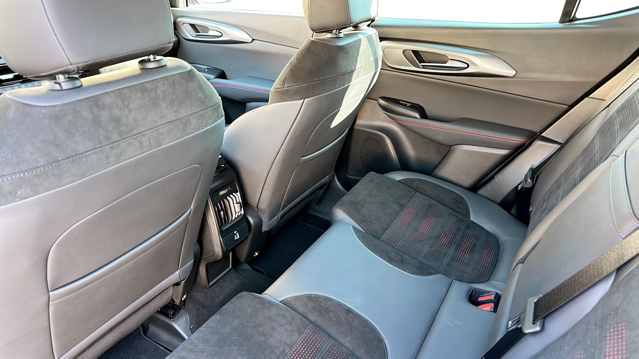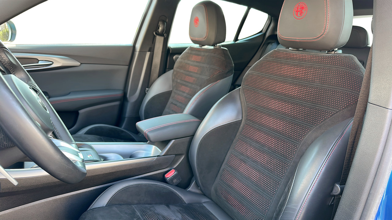Sedili in Alcantara traforata e tessuto tecnico soft-touch con cuciture rosse
