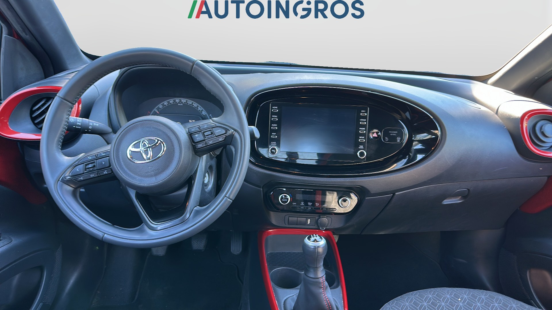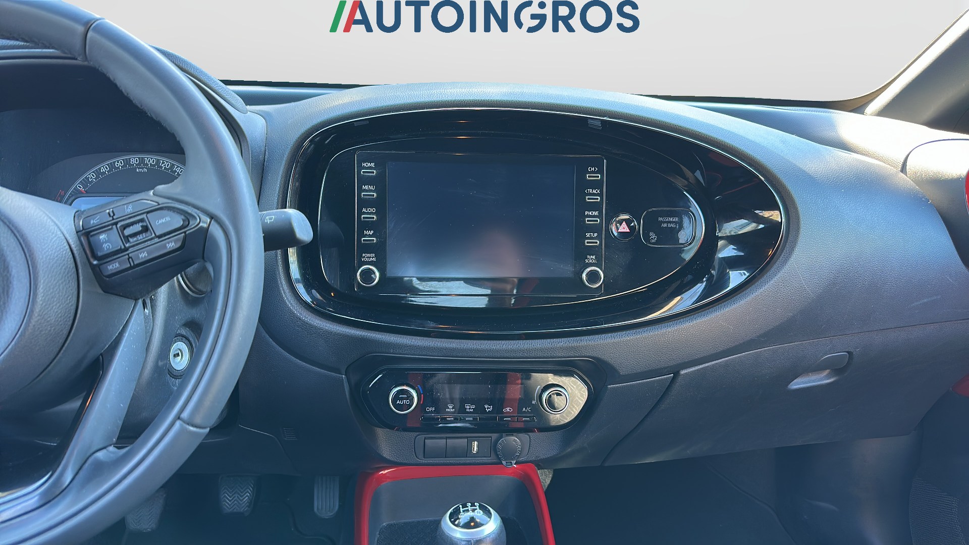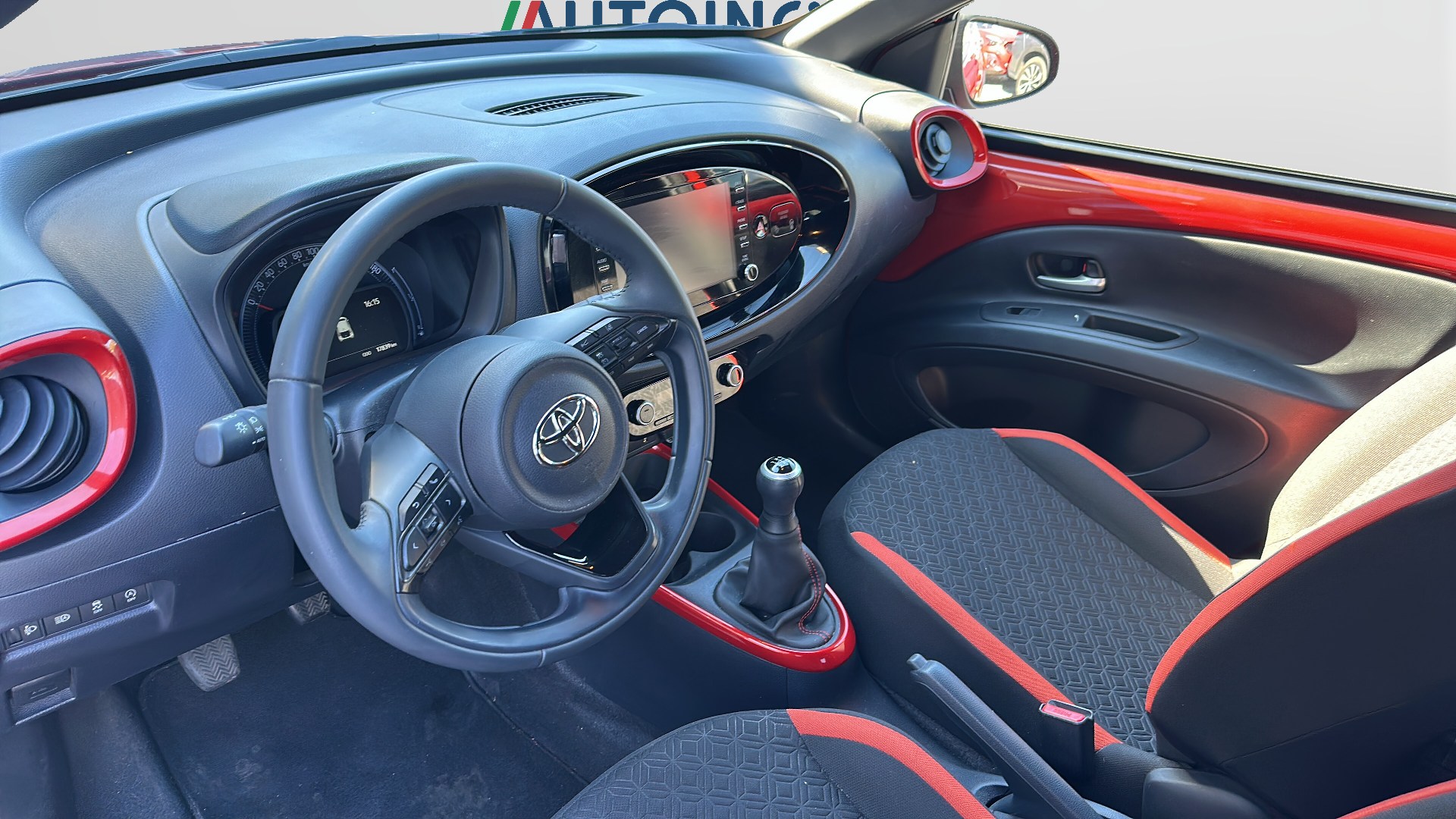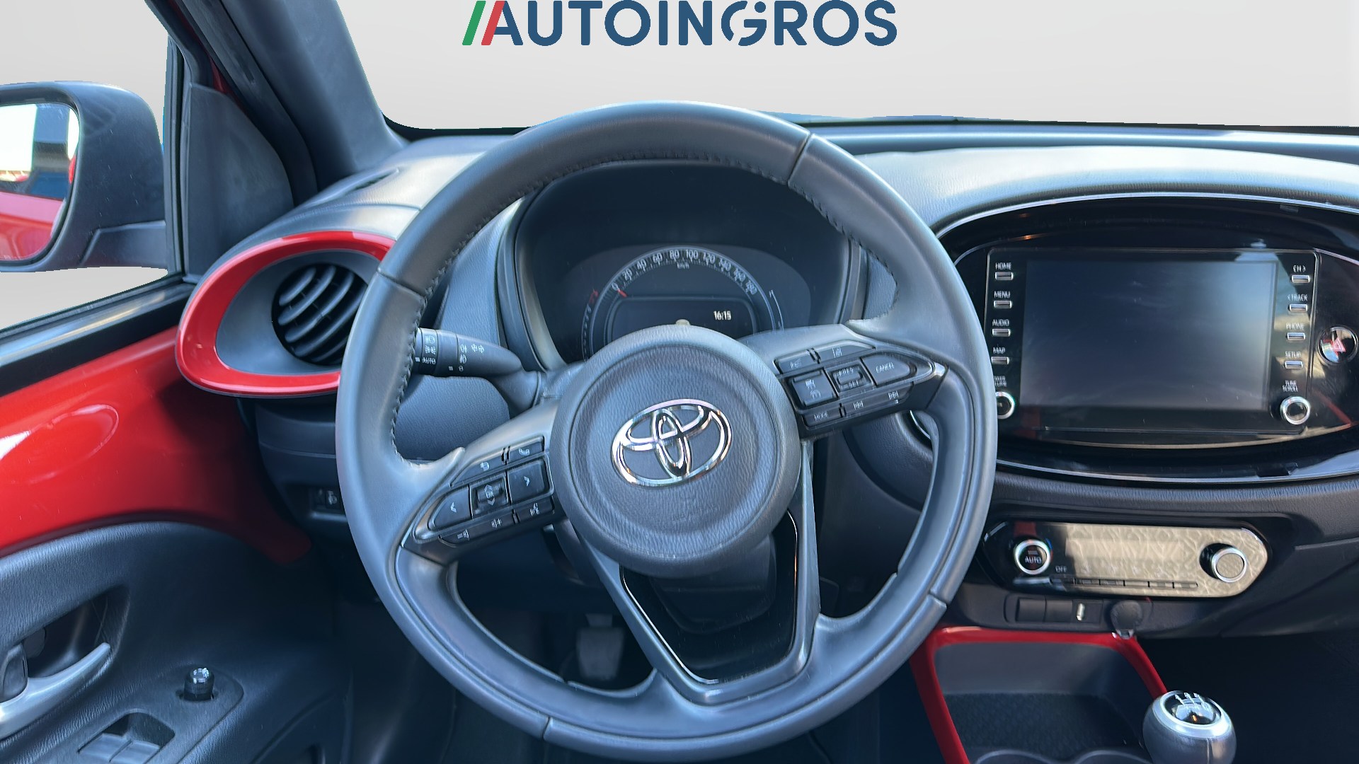 Modanatura del cambio e portabicchieri nera lucida e dettaglio anodizzato in tinta con la carrozzeri