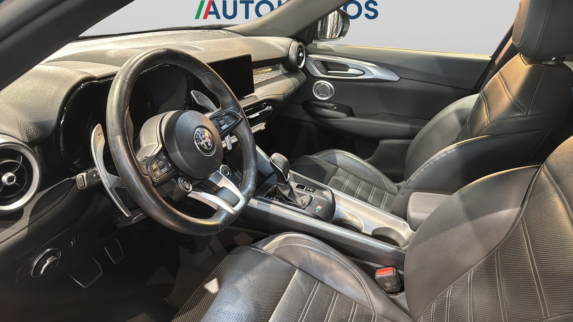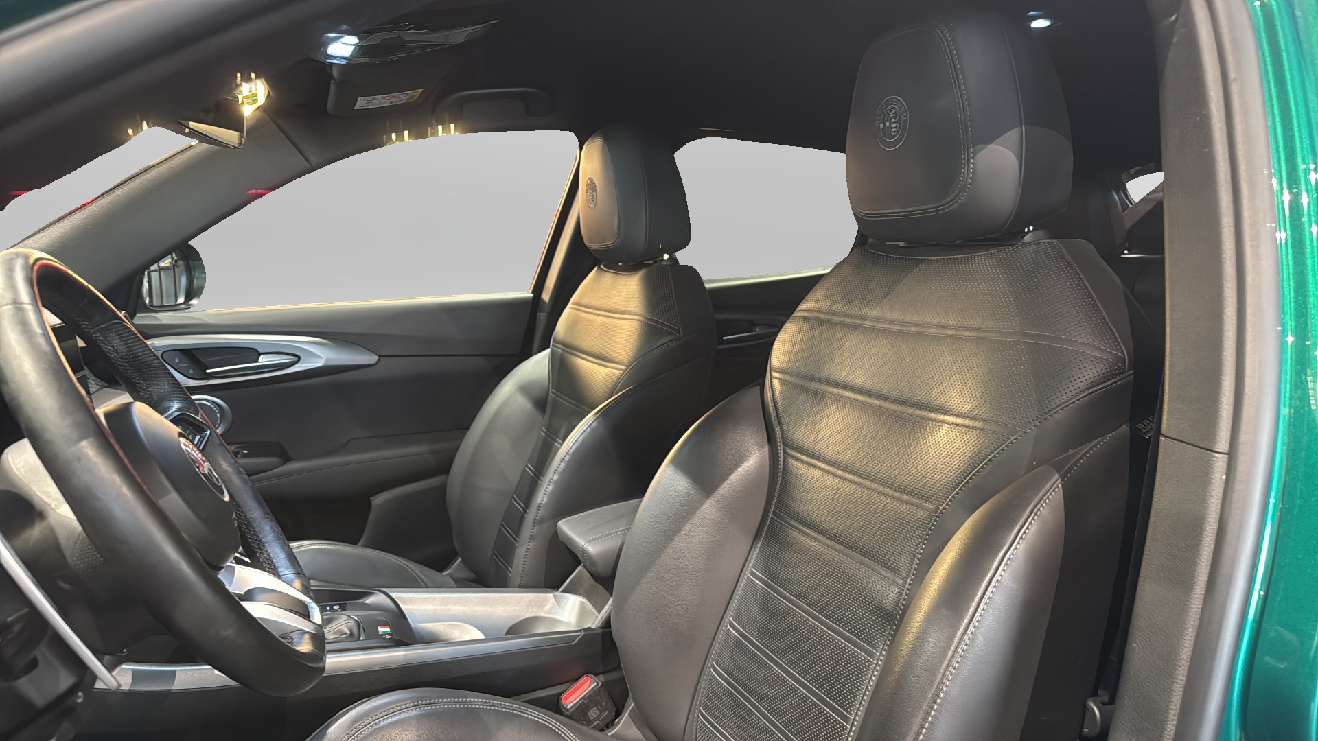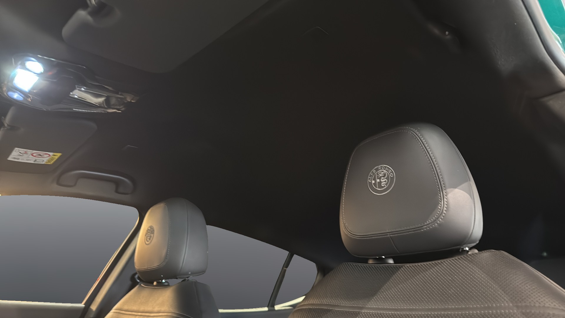 Sedili in Alcantara traforata e tessuto tecnico soft-touch con cuciture rosse