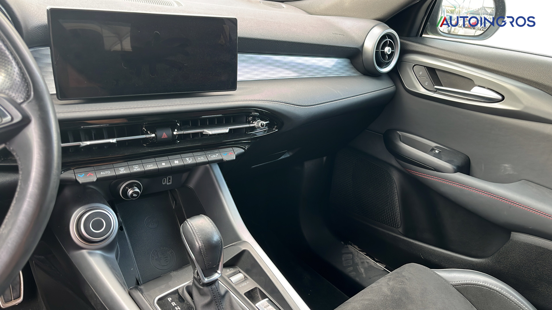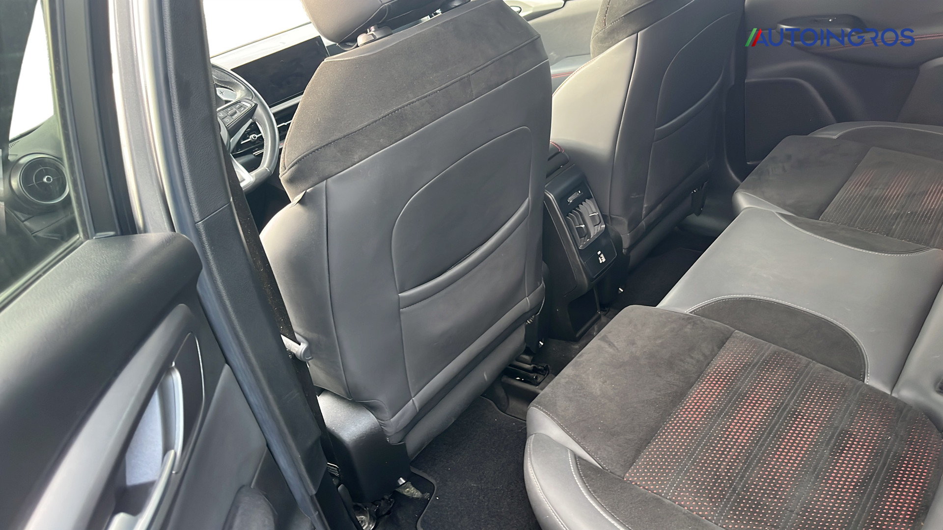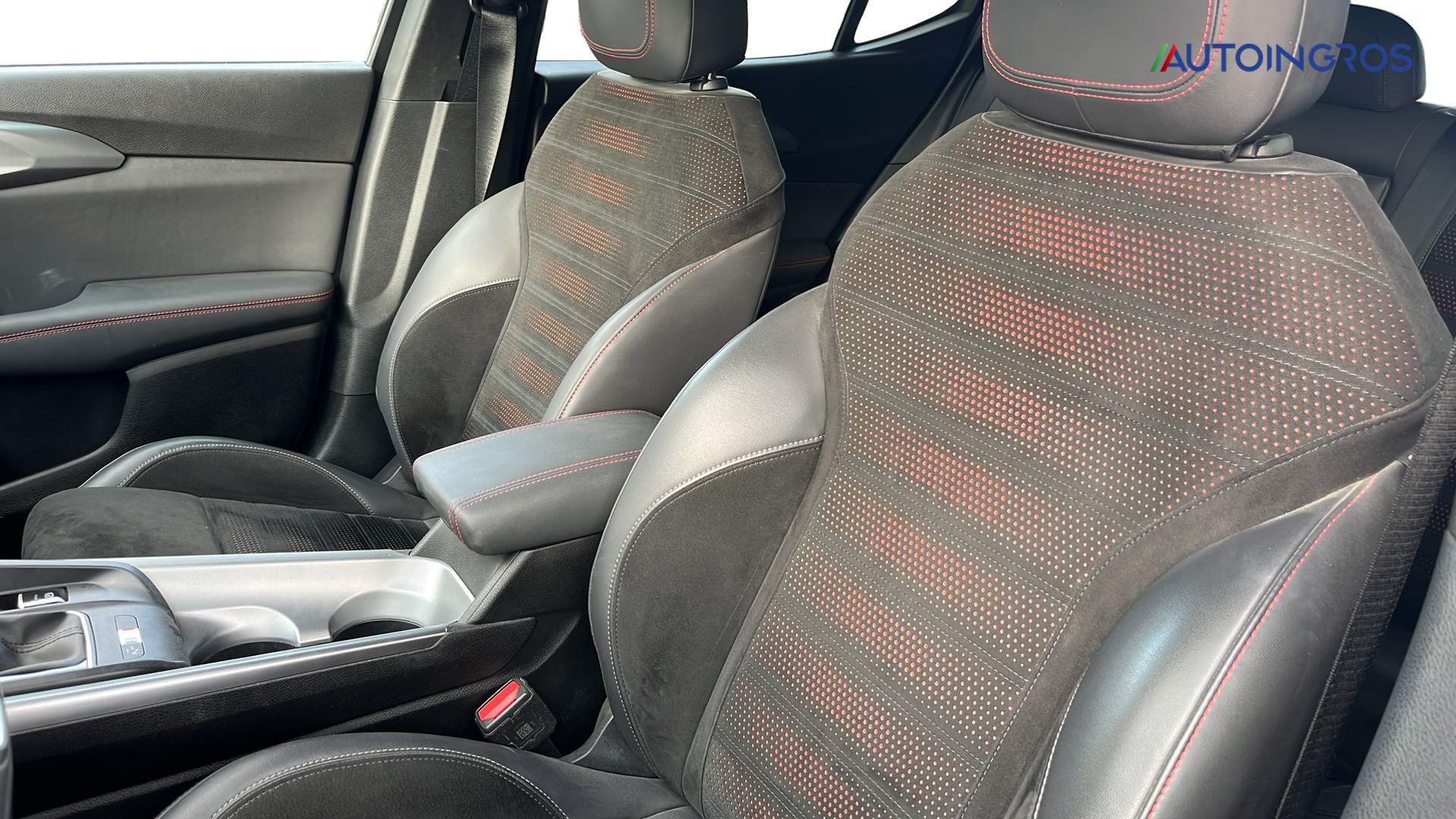 Sedili in Alcantara traforata e tessuto tecnico soft-touch con cuciture rosse
